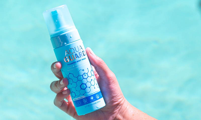 AQUA GUARD After-Swim Foaming Body Wash neutralizes chlorine and restores your skin’s natural softness and hydration.